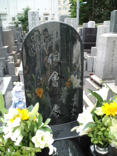 先生の墓石にはサインとジブリの方がデザインしたお花が彫られています。